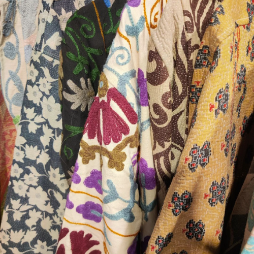 Disse skønne unika frakker, jakker og veste er syet af genanvendte sarier. De aflagte sarier,...