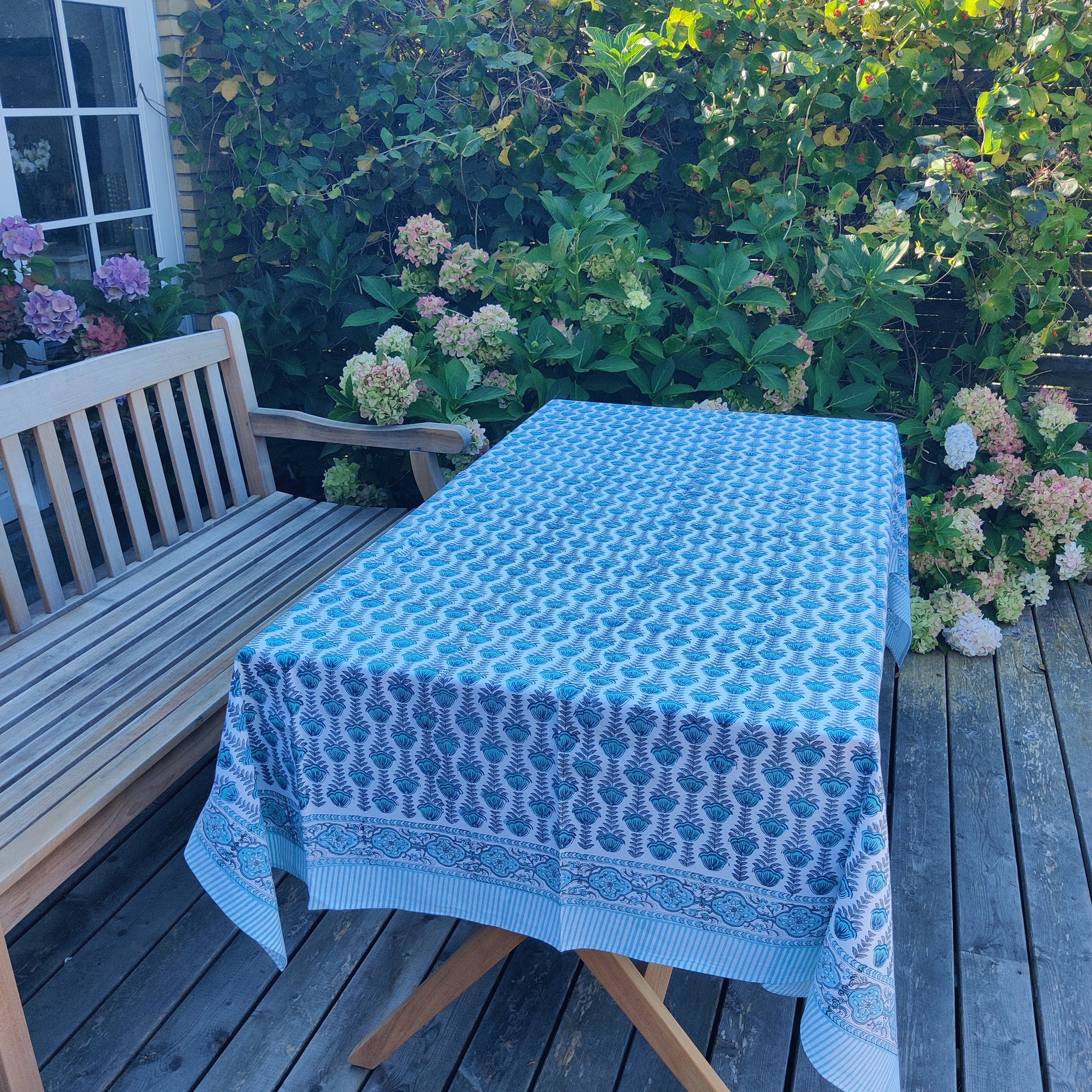 Dugen er i en ideel størrelse til at dække et spisebord, som picnic-tæppe eller som sengetæppe. Den er let at rulle sammen og opbevare, hvilket gør den bekvem at tage med på farten.