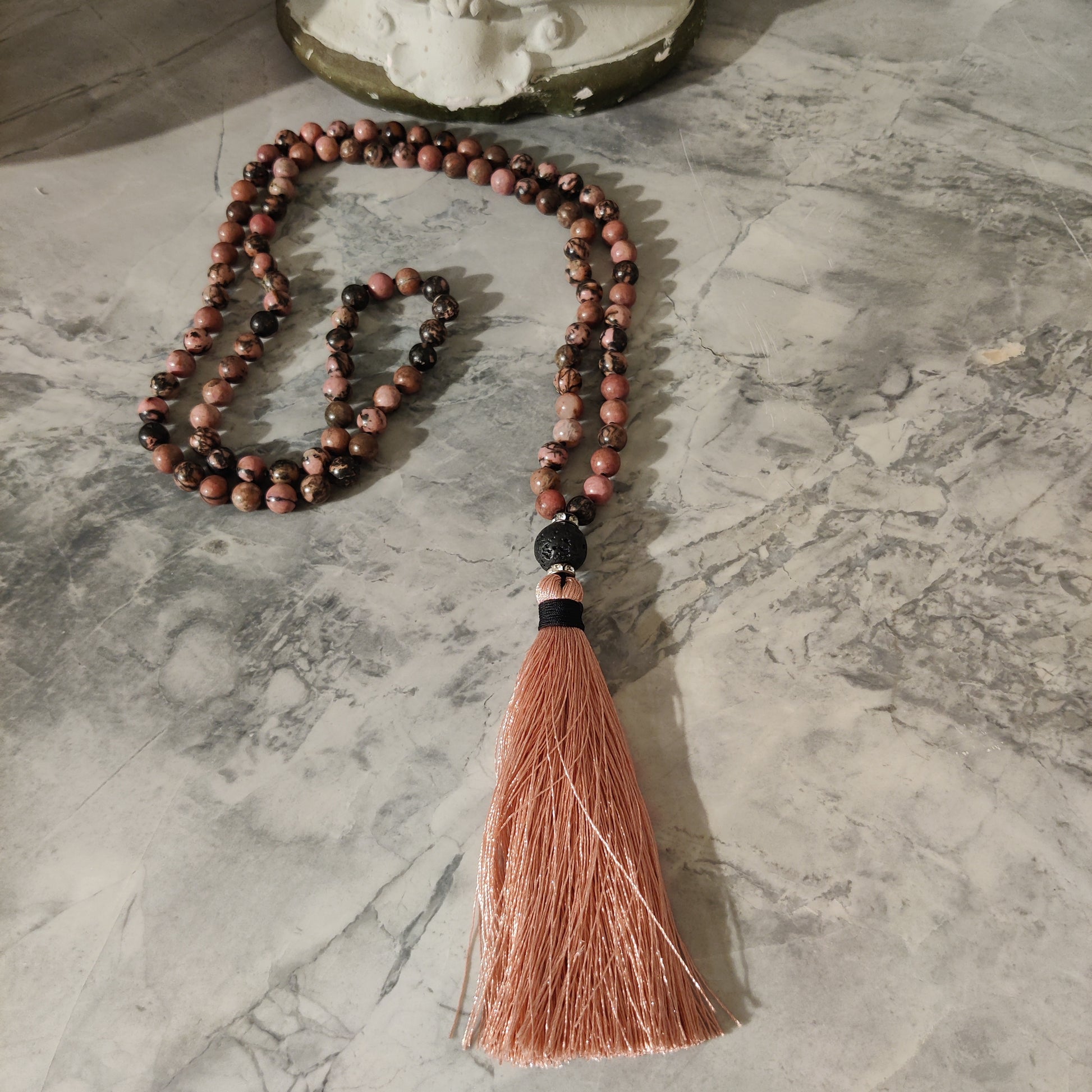 Lang Mala halskæde af natursten med kvast, nr. 2