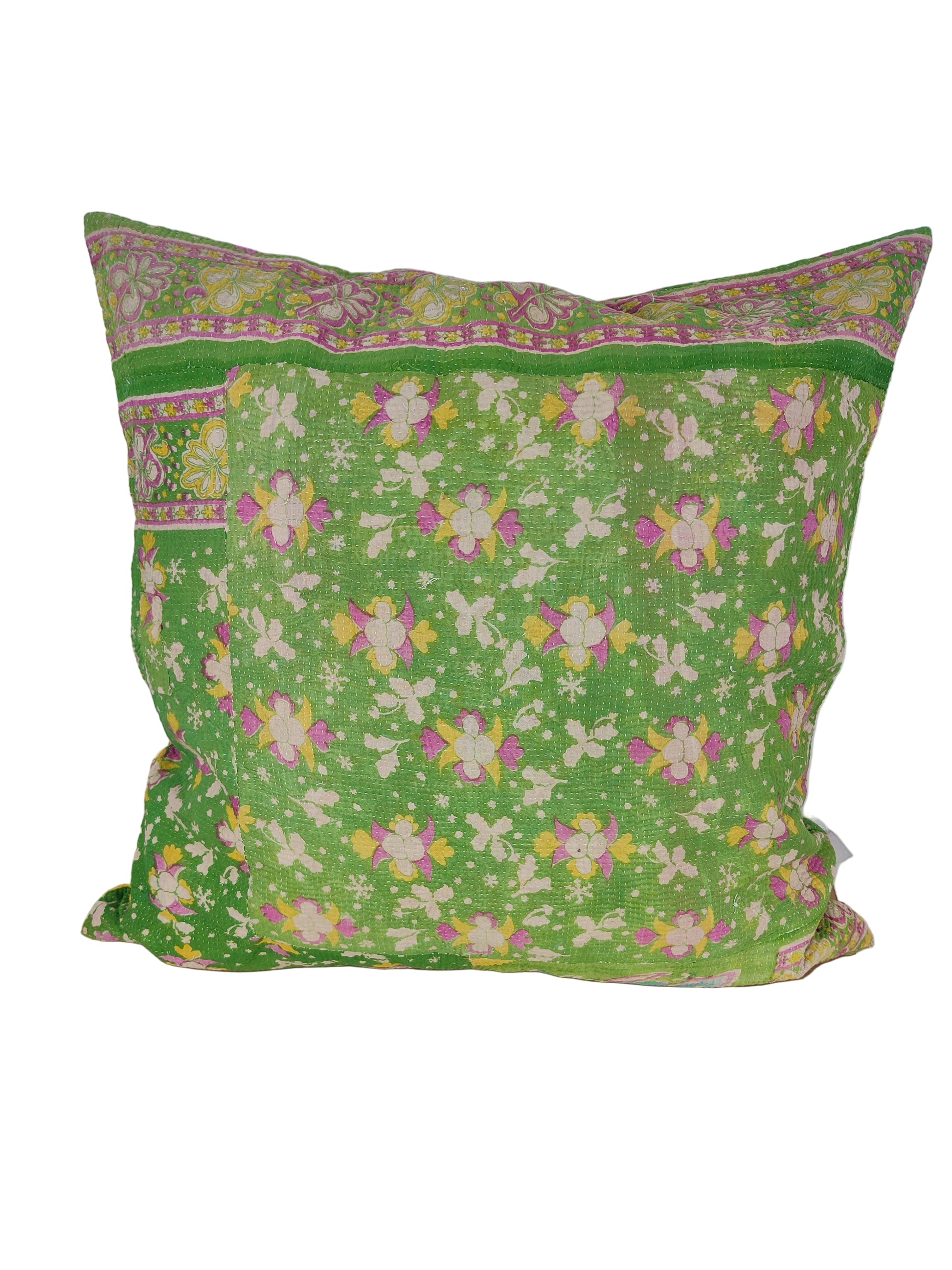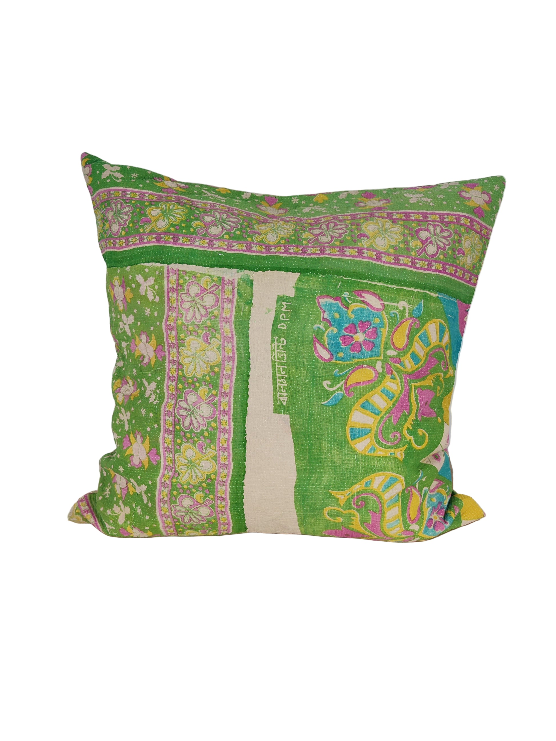 Forkæl dit hjem med vores vintage sari kantha puder – der emmer af karakter og historie. Disse puder er ikke bare dekorative; de er en rejse gennem tid og kultur.  Hver pude er unik og skabt med omhu og opmærksomhed på detaljerne, og samtidig med fokus på at bevare den autentiske charme fra vintage Kantha tæpper. Dermed kan der også forekomme diskrete brugsspor og charmerende smålapper, som er særligt udvalgt til formålet. Kantha-broderiteknikken, som er anvendt med kreativt flair, genopliver de gamle bomuldssarier og transformerer dem til en ny form af skønhed,  og dermed en høj grad af genbrug og bæredygtighed. Den traditionelle kantha-broderiteknik, med dens karakteristiske rækker af korte, sammenhængende sting syet i hånden, fortæller historien om indiske kvinder på landet, der har praktiseret denne kunst i århundreder. Hver pude er et unikt kunstværk med sin egen mønster- og farvekombination, hvilket gør den til en helt særlig tilføjelse til dit hjem. Kantha puder bærer sjælen af tradition og håndværk. Alle puder inkl. pudefyld i mix.