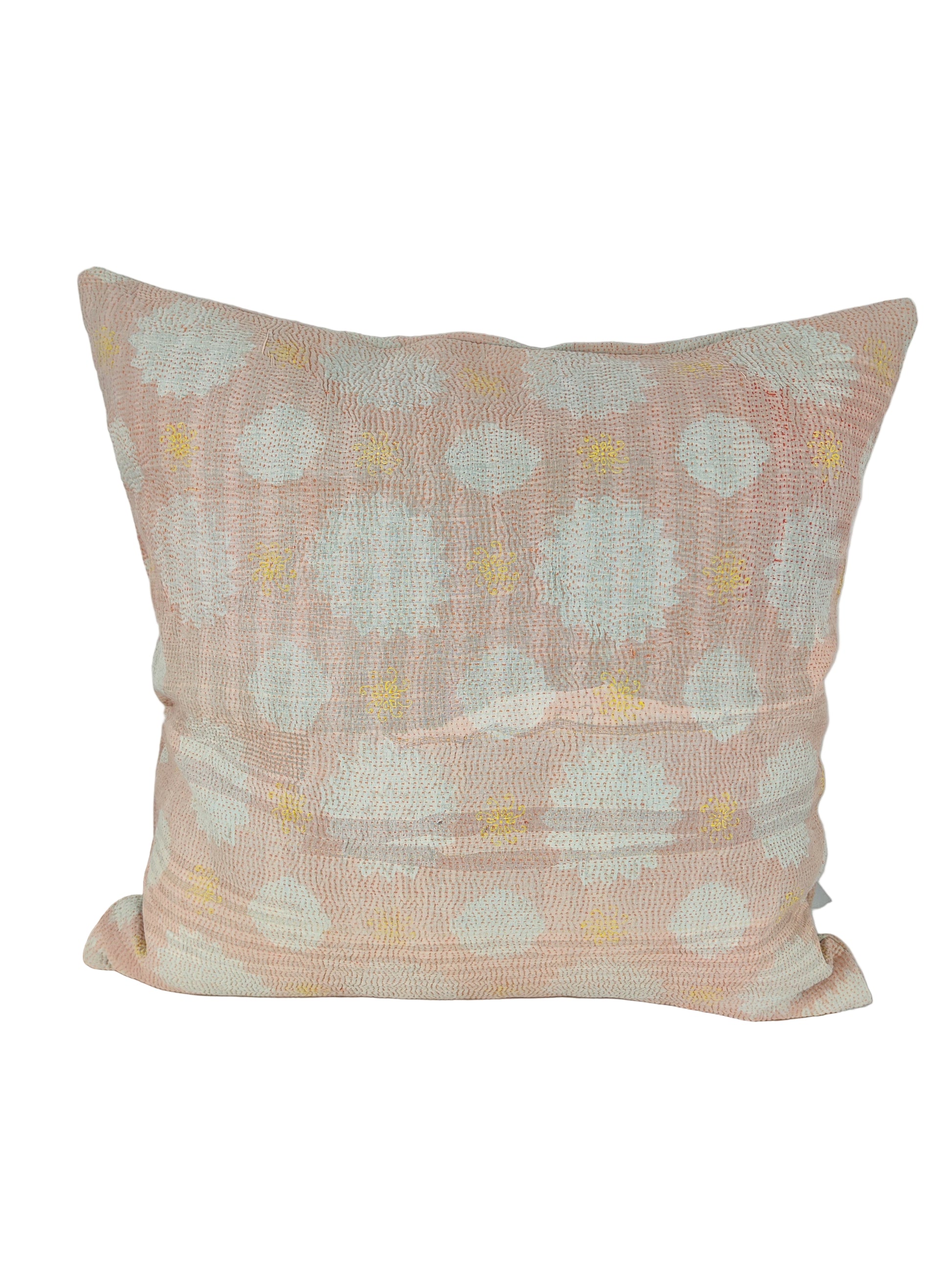 Forkæl dit hjem med vores vintage sari kantha puder – der emmer af karakter og historie. Disse puder er ikke bare dekorative; de er en rejse gennem tid og kultur.  Hver pude er unik og skabt med omhu og opmærksomhed på detaljerne, og samtidig med fokus på at bevare den autentiske charme fra vintage Kantha tæpper. Dermed kan der også forekomme diskrete brugsspor og charmerende smålapper, som er særligt udvalgt til formålet. Kantha-broderiteknikken, som er anvendt med kreativt flair, genopliver de gamle bomuldssarier og transformerer dem til en ny form af skønhed,  og dermed en høj grad af genbrug og bæredygtighed. Den traditionelle kantha-broderiteknik, med dens karakteristiske rækker af korte, sammenhængende sting syet i hånden, fortæller historien om indiske kvinder på landet, der har praktiseret denne kunst i århundreder. Hver pude er et unikt kunstværk med sin egen mønster- og farvekombination, hvilket gør den til en helt særlig tilføjelse til dit hjem. Kantha puder bærer sjælen af tradition og håndværk. Alle puder inkl. pudefyld i mix.