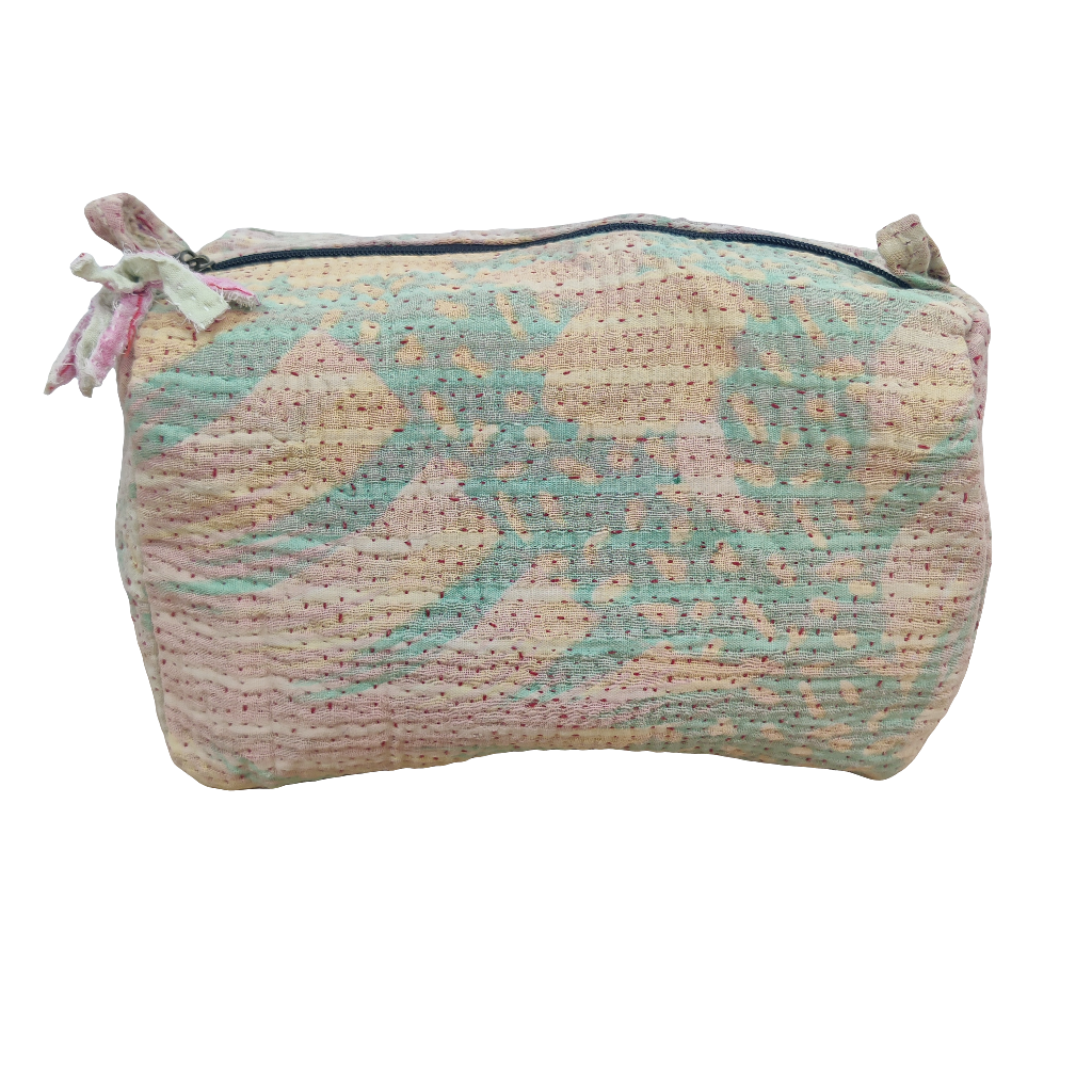 Skønne sari-toilettasker syet af vintage sari stof. Hver en taske er et unika, og der er mange smukke mønstre og farver at vælge imellem. Toilettasken er foeret med plastik indvendigt.