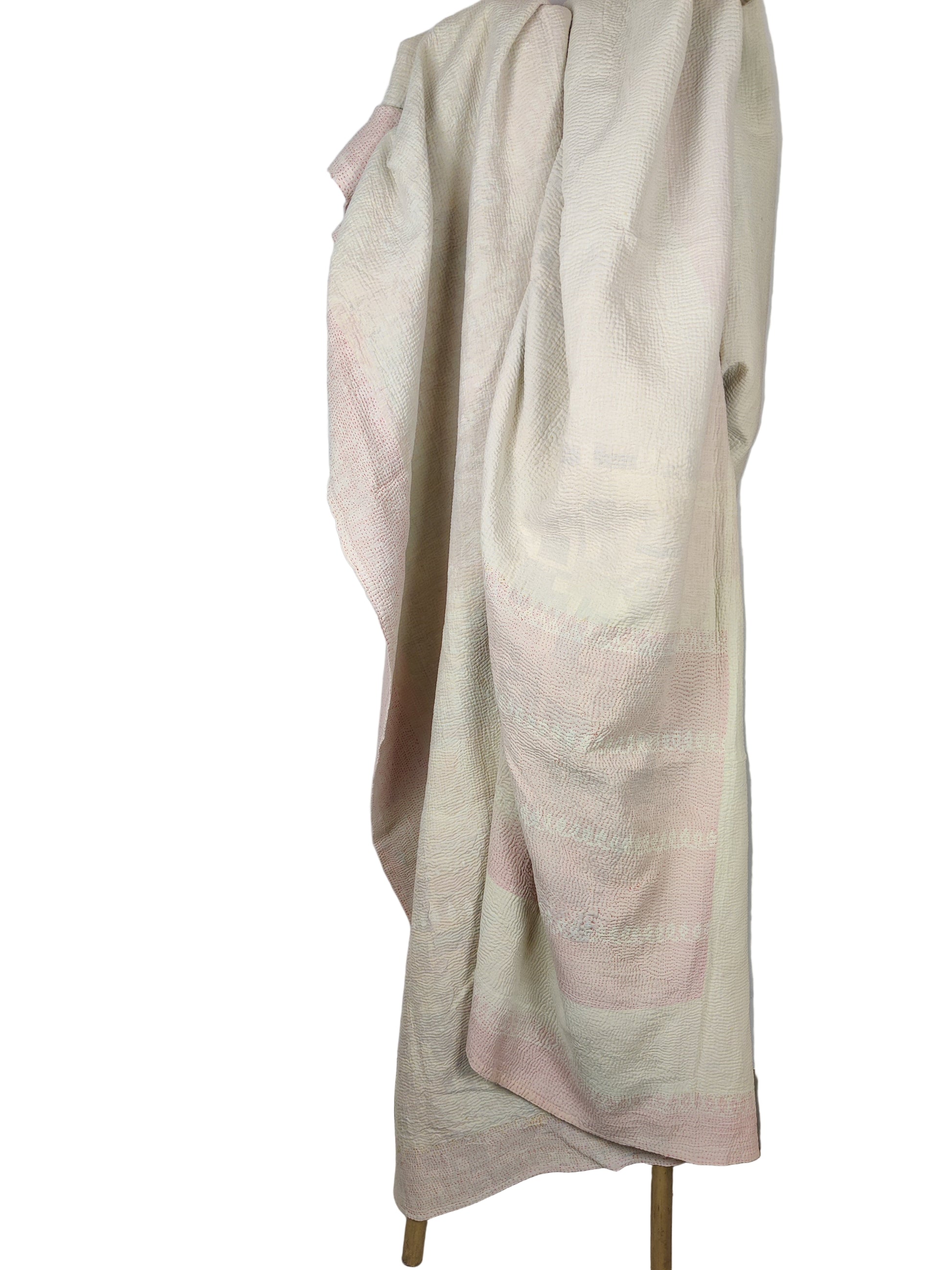 Disse skønne unika tæpper er syet af genanvendte sarier De aflagte sarier sys sammen i flere lag og quiltes med de særlige kantha sting. Da stoffet er genbrugt kan der forekomme pletter, slid og små finurlige lapper. Dette er en del af charmen.