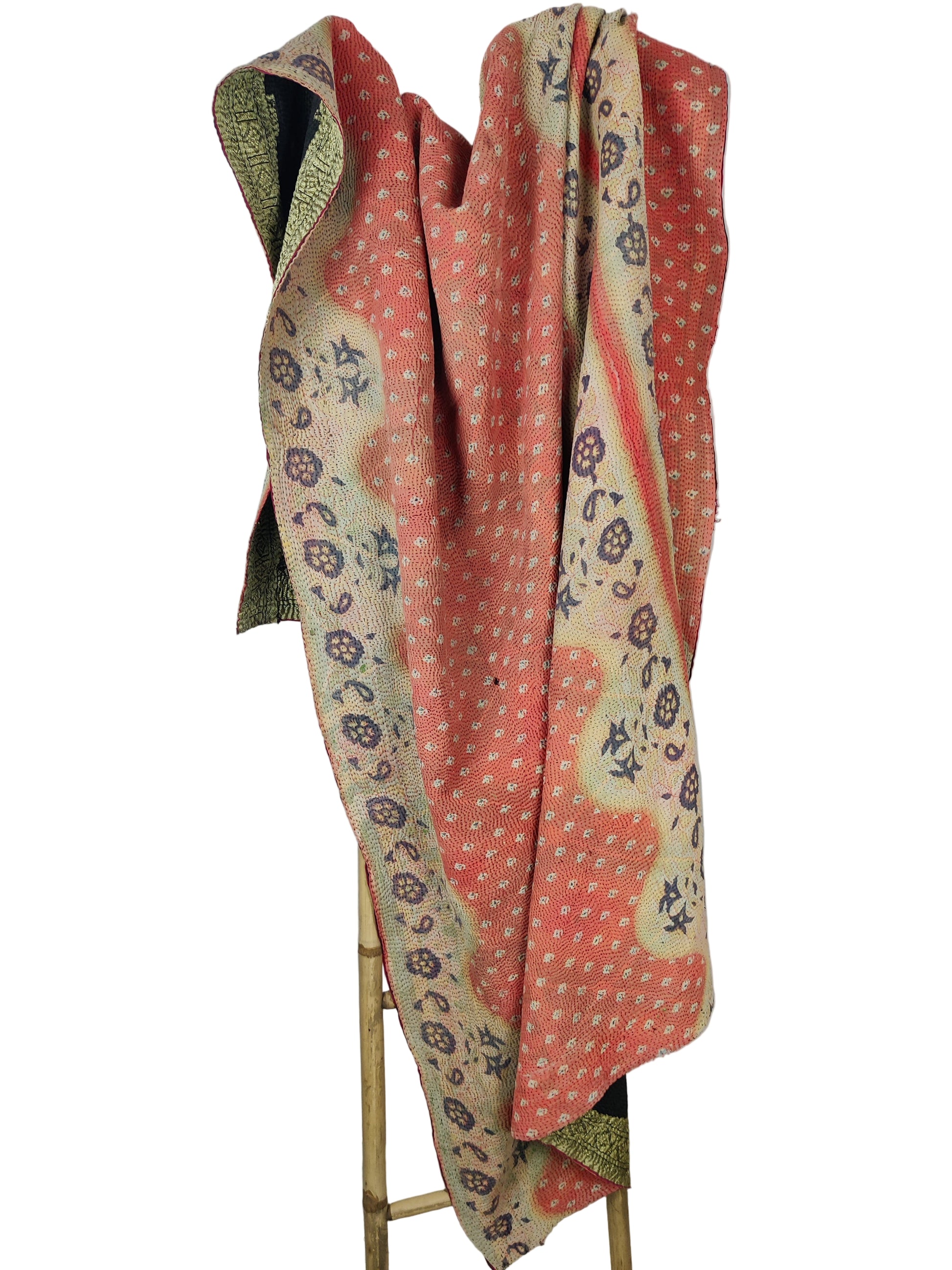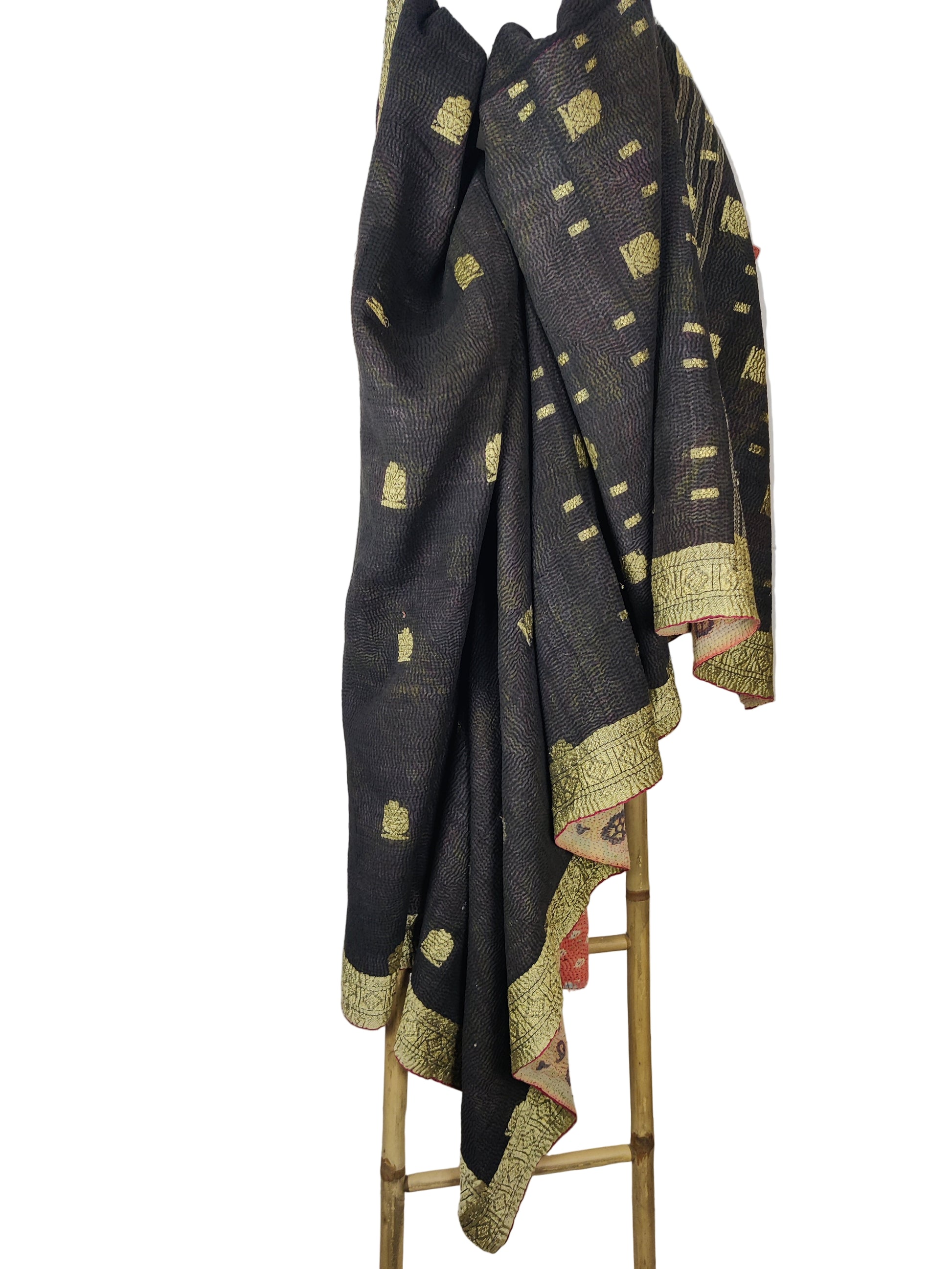 Disse skønne unika tæpper er syet af genanvendte sarier De aflagte sarier sys sammen i flere lag og quiltes med de særlige kantha sting. Da stoffet er genbrugt kan der forekomme pletter, slid og små finurlige lapper. Dette er en del af charmen.