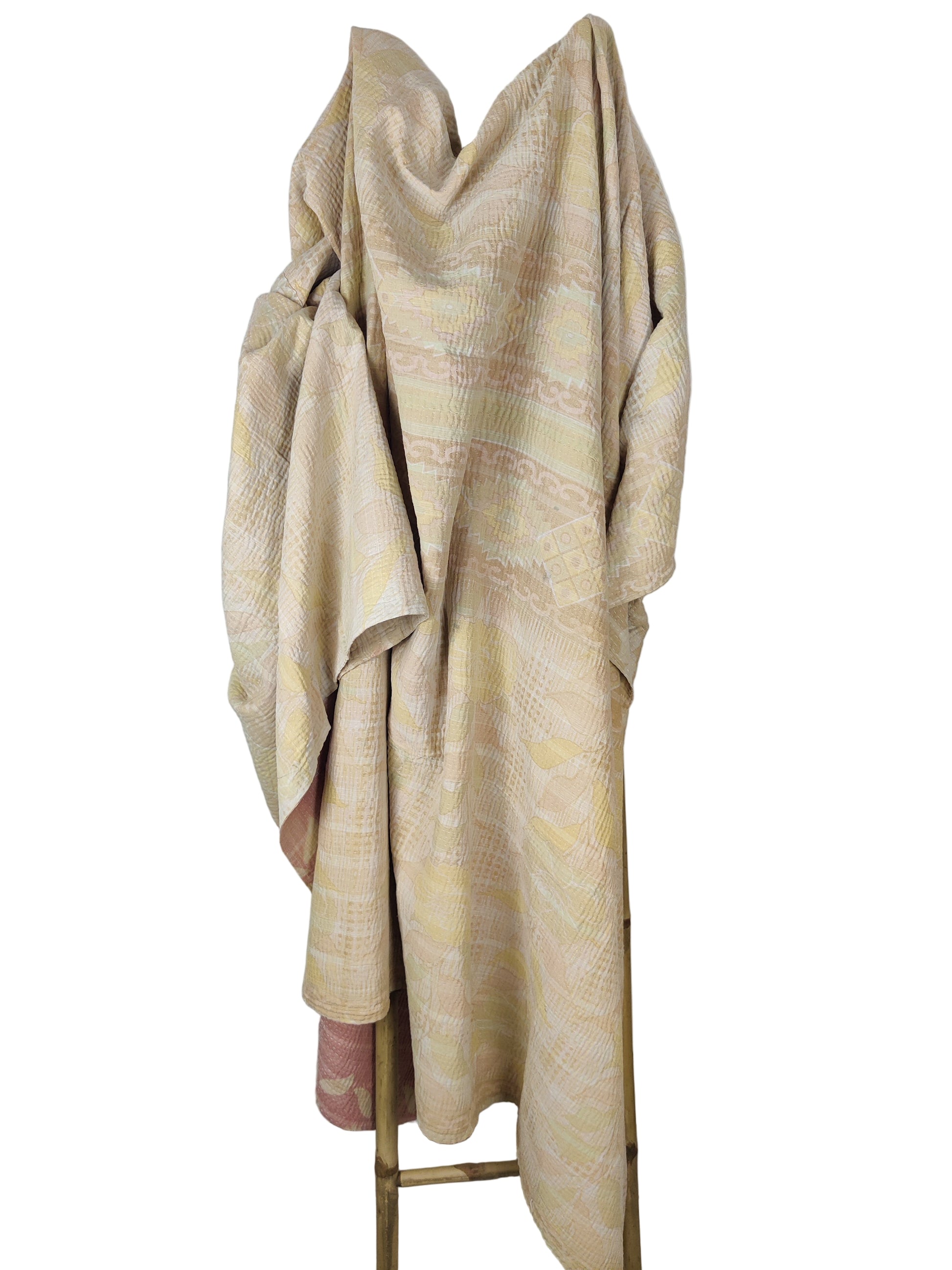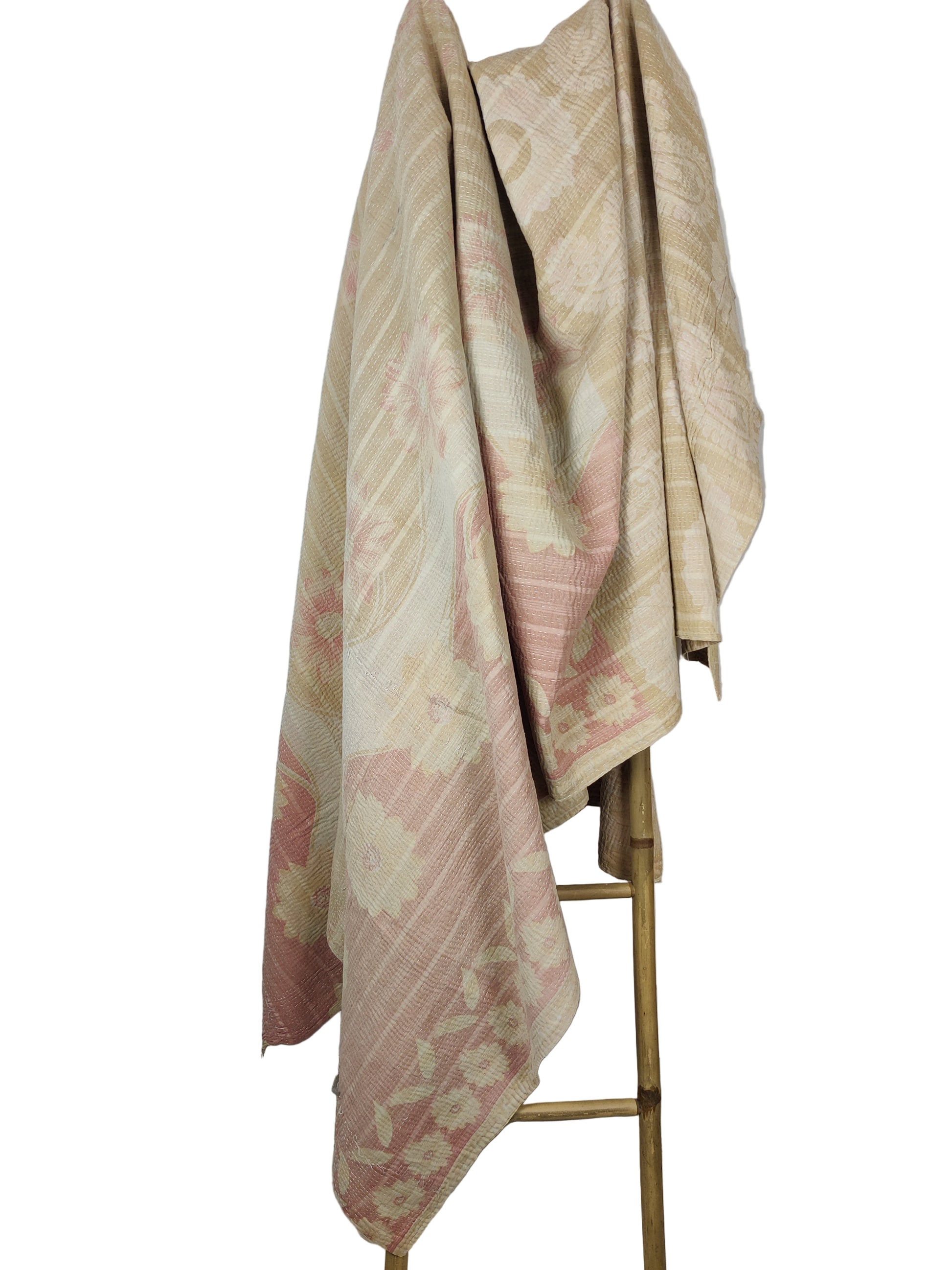 Disse skønne unika tæpper er syet af genanvendte sarier De aflagte sarier sys sammen i flere lag og quiltes med de særlige kantha sting. Da stoffet er genbrugt kan der forekomme pletter, slid og små finurlige lapper. Dette er en del af charmen.